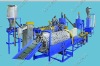 Flow chart of washing line: Bottle conveyor -- Label stripper -- Sorting belt -- Bottle Conveyor -- Crusher -- Screw conveyor -- Bi-screw washing -- Grinding --washing -- Screw conveyor -- Chemical wahsing (with hot water) -- Screw conveyor -- Neutralizing barrel -- Screw conveyor -- Spin-drier -- Wind charger and heater -- Store Hopper -- Control cabinet